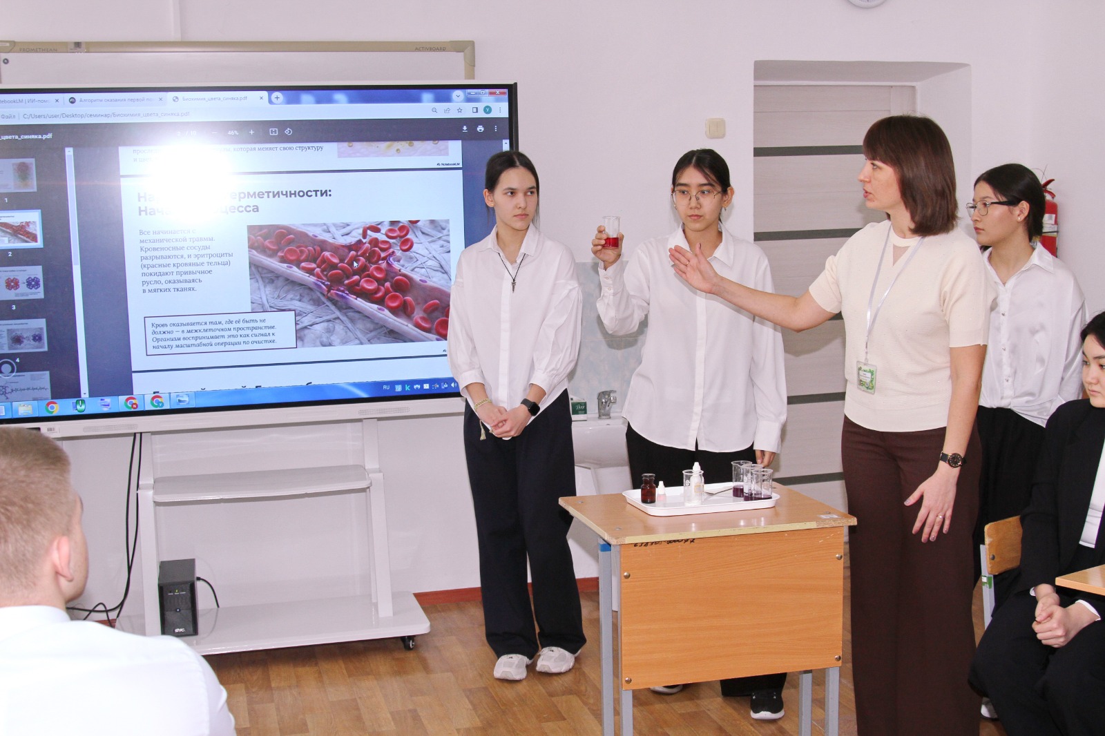 2026 жылдың 20 ақпанында Қостанайдағы М.Горький атындағы гимназияда биология және химия мұғалімдеріне арналған семинар өтті. Тәжірибелік бөлім 5, 7 және 11 сыныптарға арналған интеграцияланған STEAM сабақтарын қамтыды. Сабақтар биологияны, химияны, математиканы және информатиканы біріктірудің, сондай-ақ күрделі тақырыптарды түсіндіруде сандық құралдарды, модельдеуді және жасанды интеллект элементтерін пайдаланудың әлеуетін көрсетті.